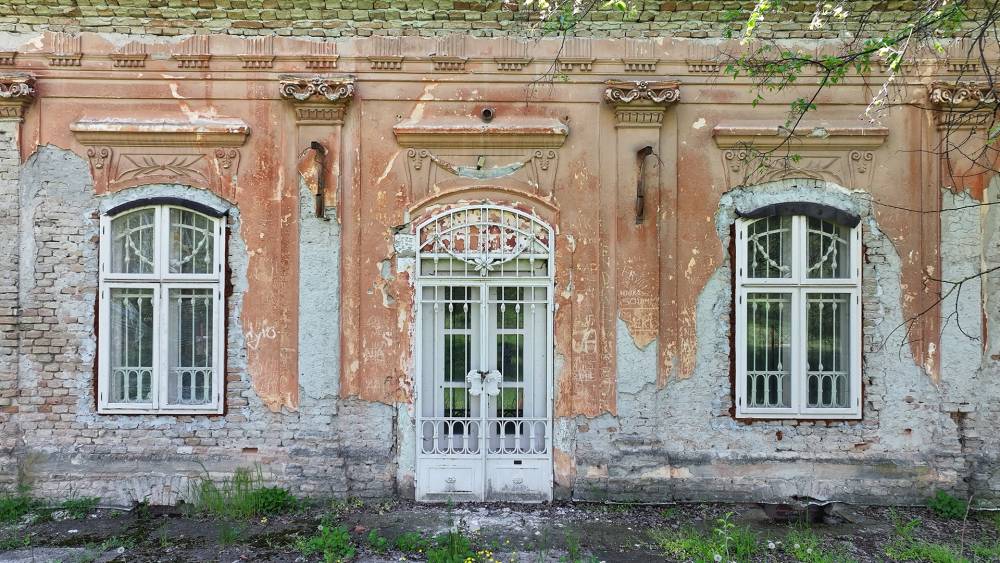 Horgoš was settled in the 1770s, and construction of the castle began in the 1780s. Around 1790, the reed roof burned down, and Miklós’ son István enriched the castle with frescoes and a French garden after his father’s death. The castle is a typical example of Baroque style, designed by an unknown Viennese architect. The building is L-shaped, with an impressive staircase, veranda, wrought-iron gate, composite pilasters, frieze with triglyphs and metopes, Baroque pediment, high mansard roof, and floral stucco decoration.
